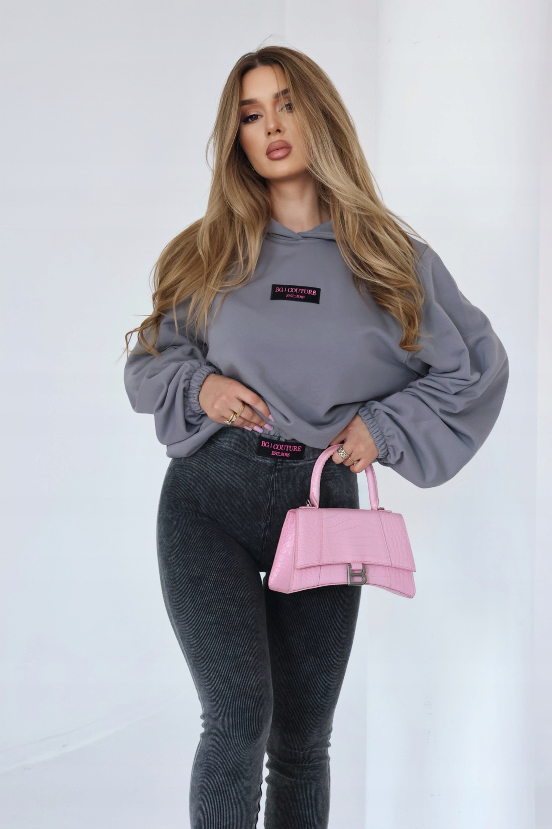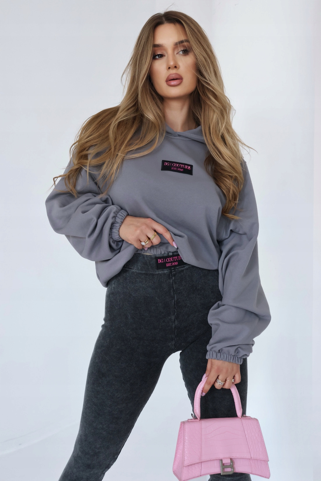 Bluza damska BG OFF z wysokiej jakości bawełny nieocieplanej. Bluza z kapturem z naszywką na środku z logo marki BG | COUTURE EST. 2018. Bluza wykończona gumkami.