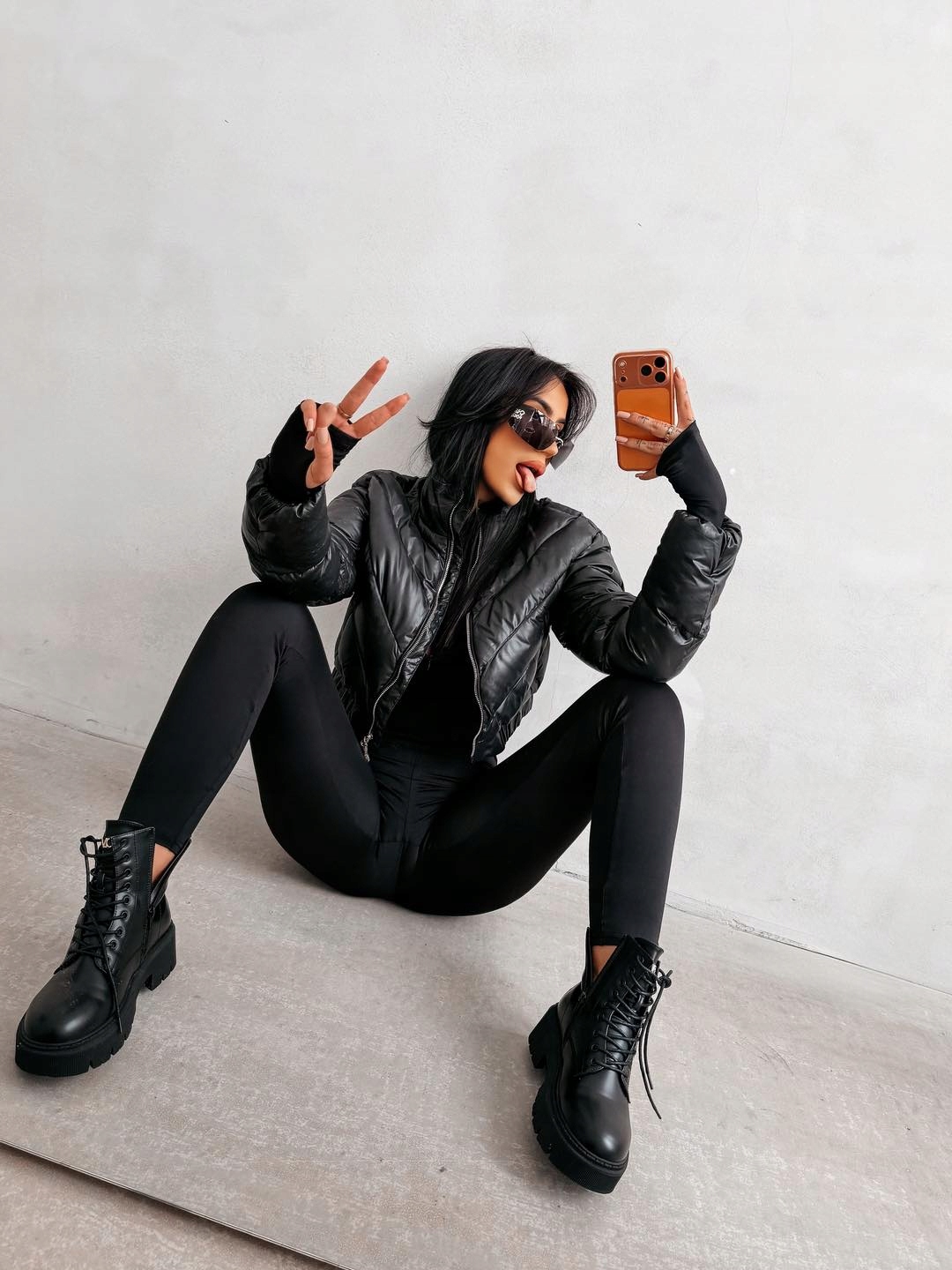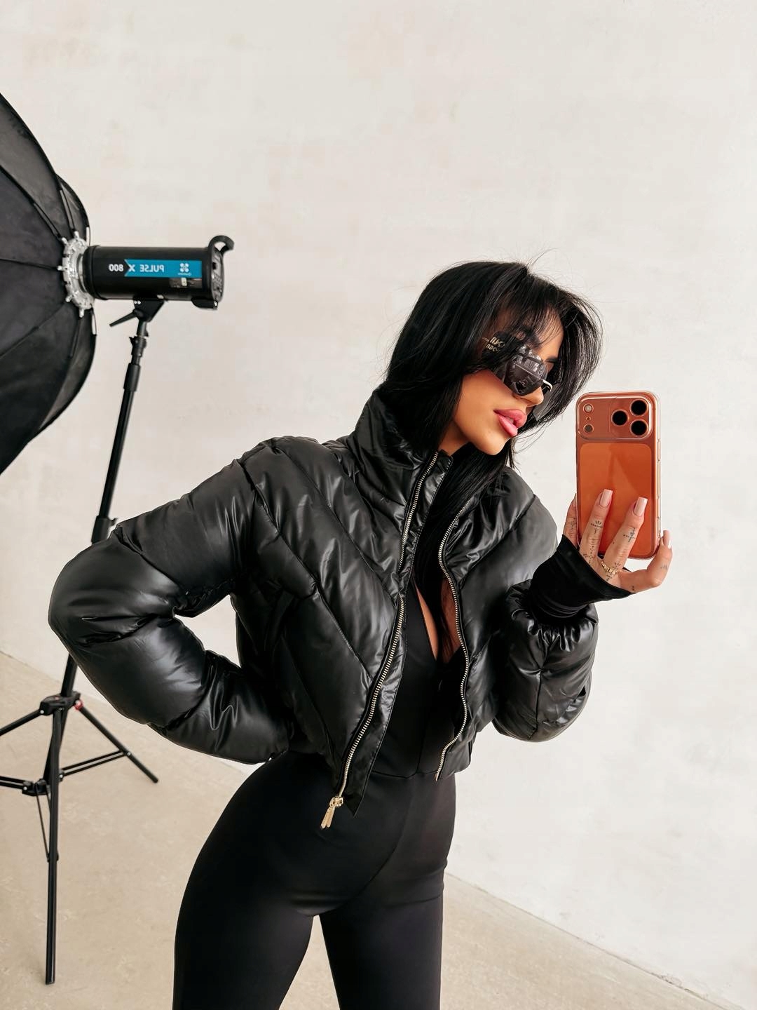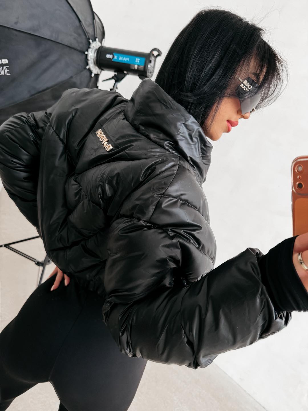 Pikowana kurtka o nowoczesnym, lekko skróconym kroju. Model wykonany z gładkiej, lekko połyskującej tkaniny. Kurtka zapinana na solidny, złoty zamek z logo marki OLAVOGA. Model z wysoką stójką. Brzegi zakończone elastycznym wykończeniem. Na tyle umieszczone subtelne, złote logo marki OLAVOGA. Kurtka posiada praktyczne kieszenie zapinane na zamek.